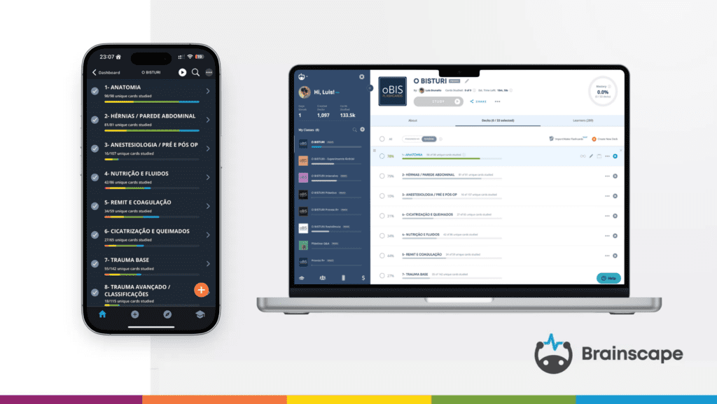 Desde 2022 O Bisturi © Flashcards é de autoria de Luis Brunello em parceria com equipe Brainscape ©